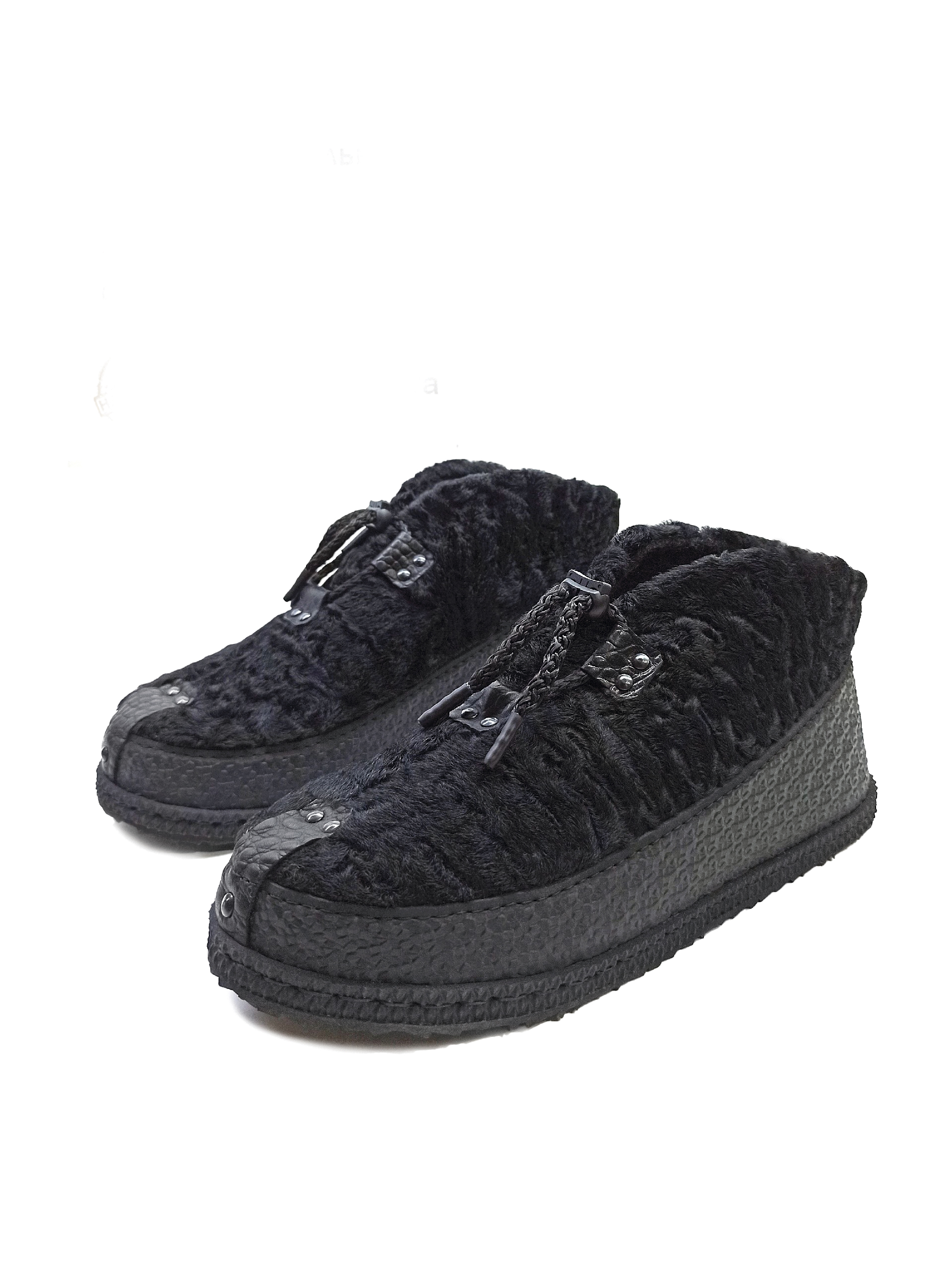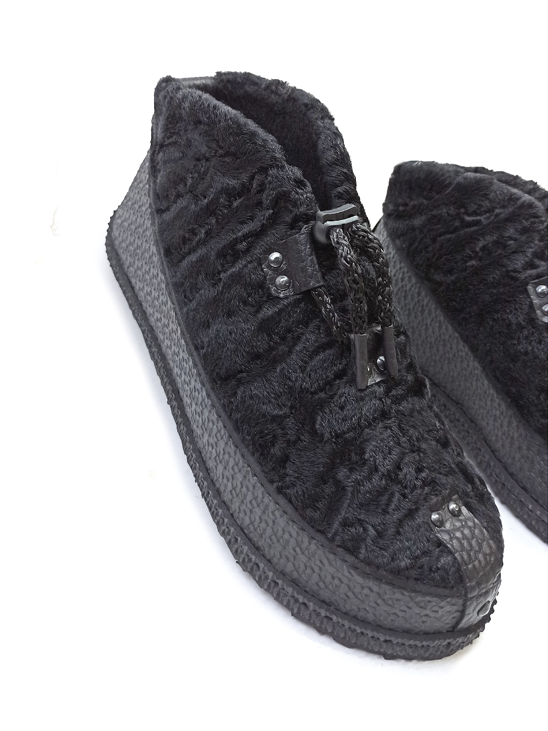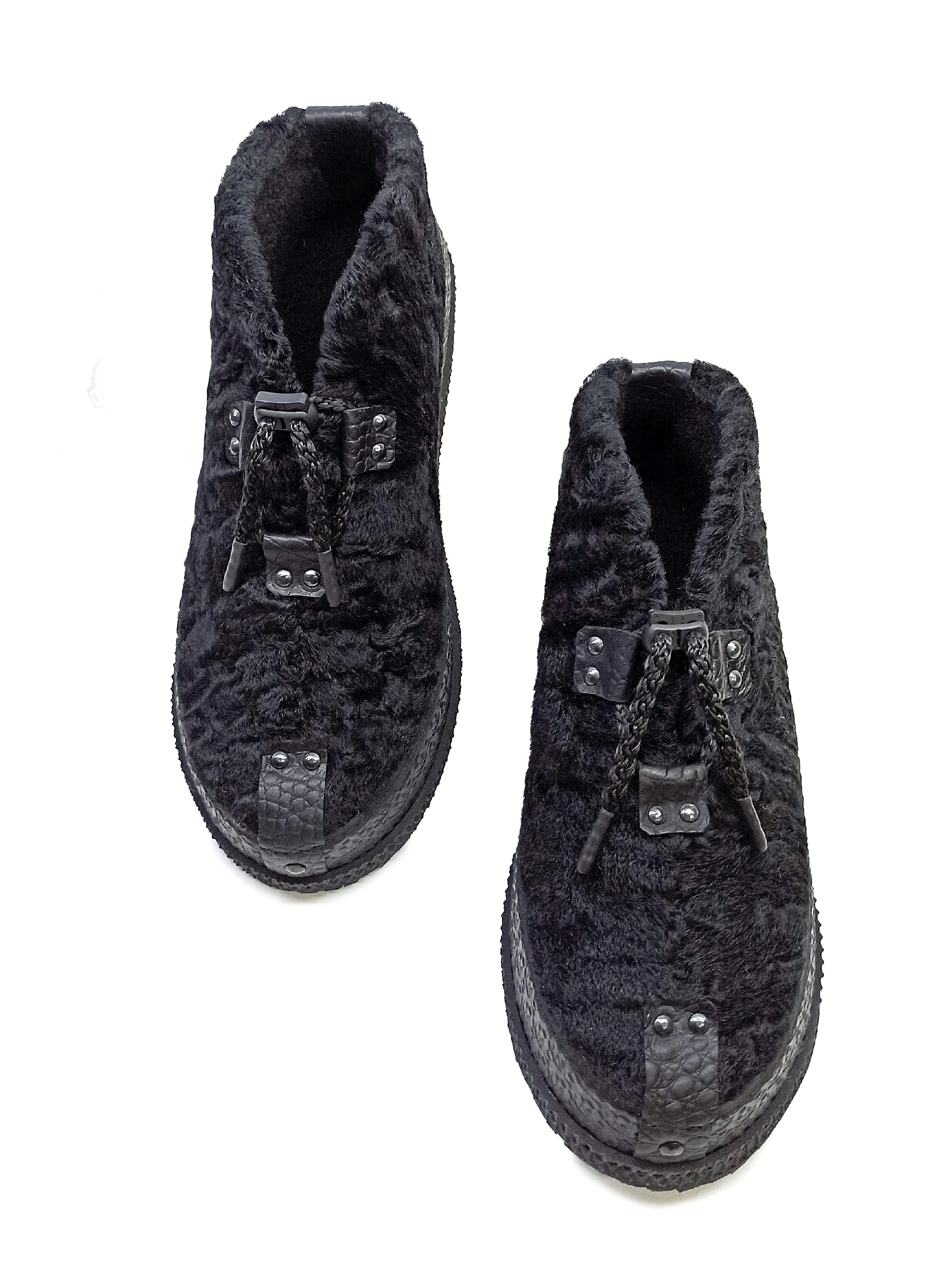 Стильные ботинки из натурального меха каракуля черного цвета с красивой фактурой. 100% ручная работа!
