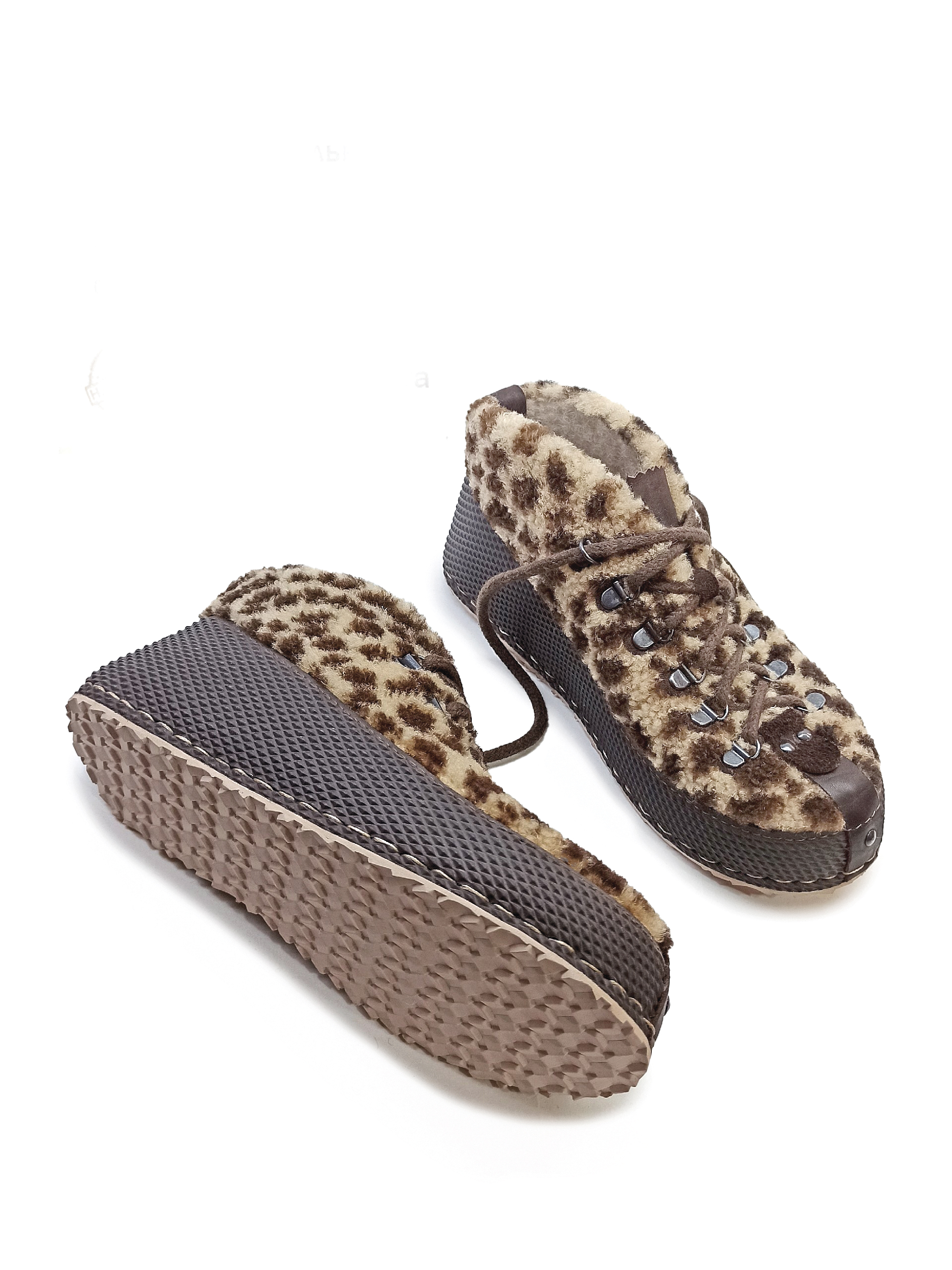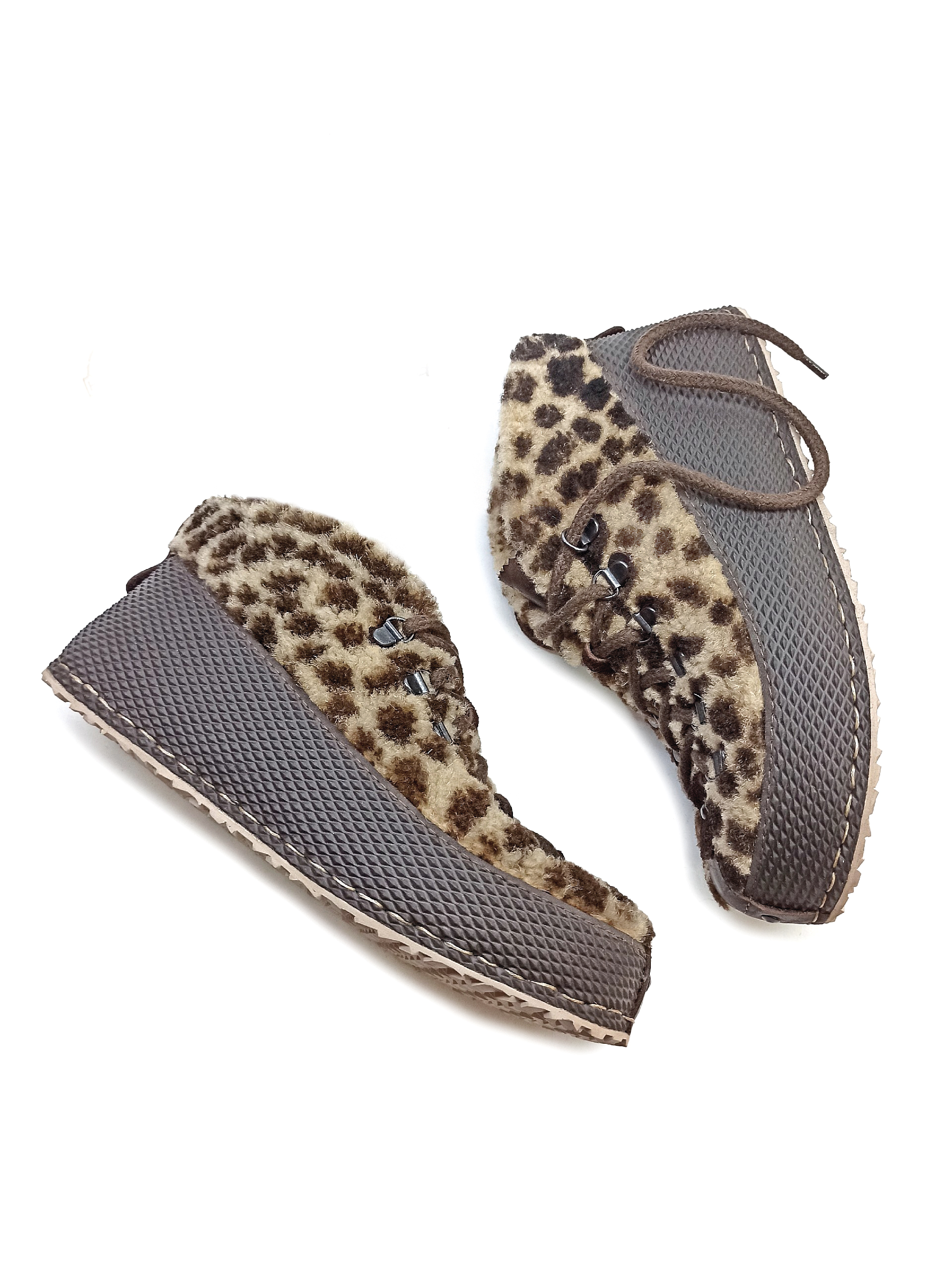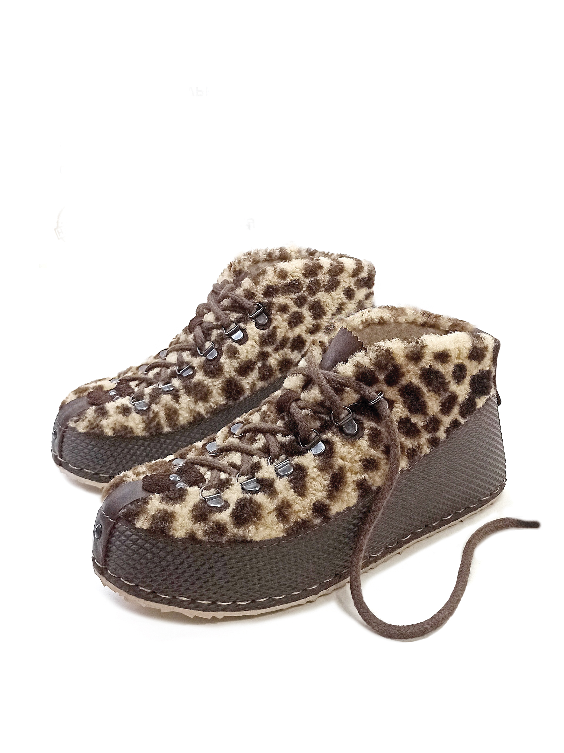 Стильные и теплые ботиночки из натурального меха с анималистичным принтом.