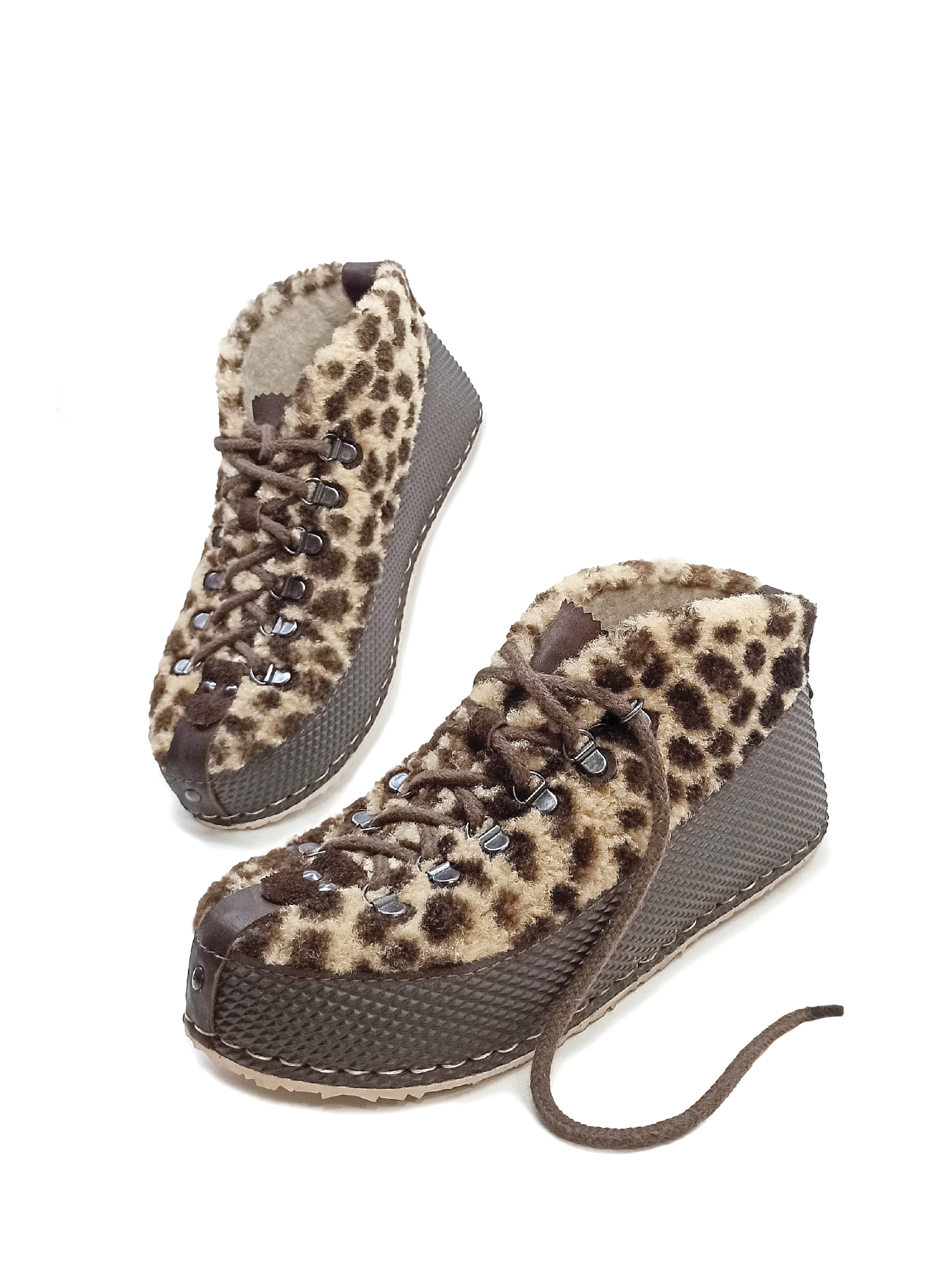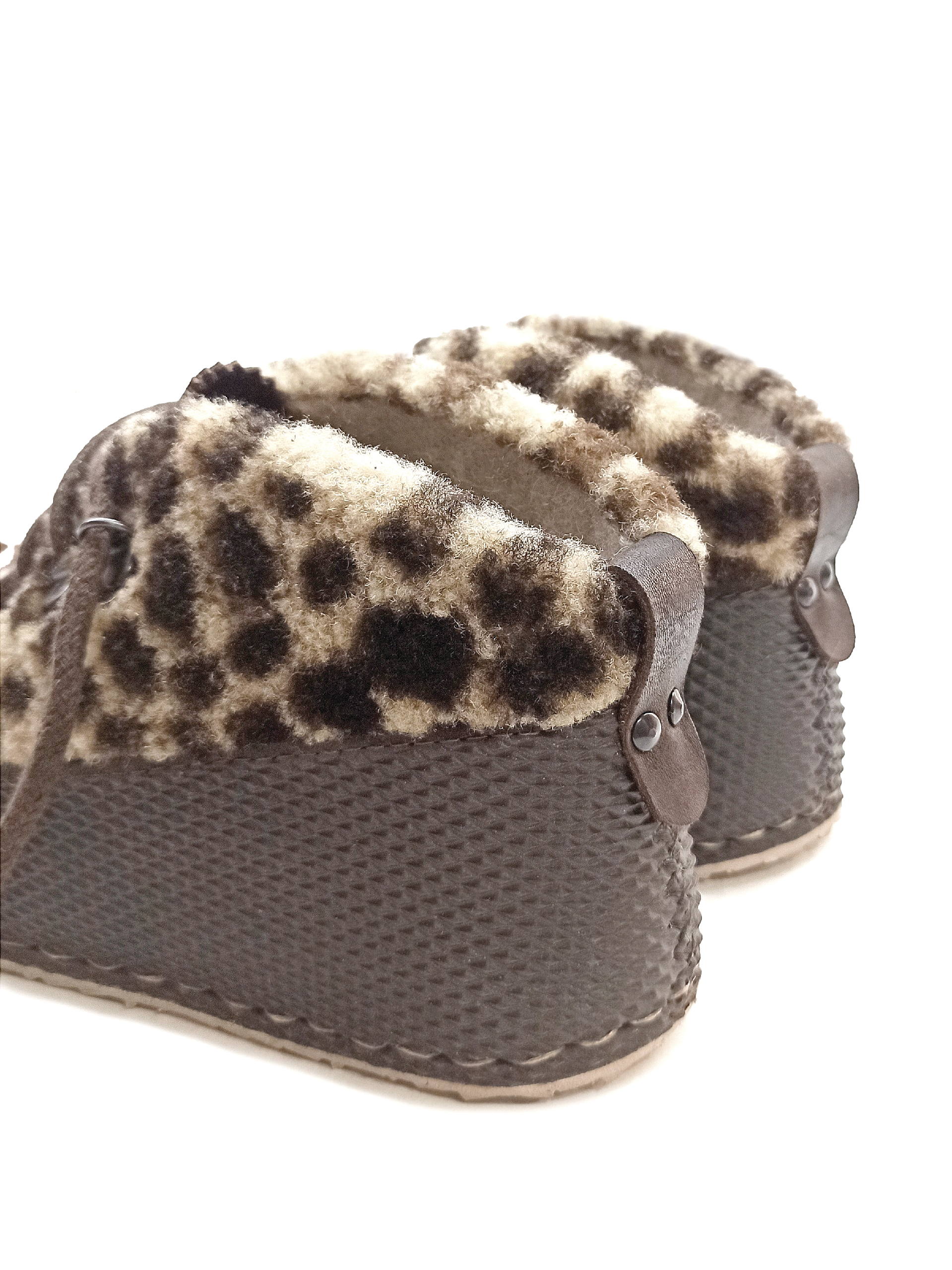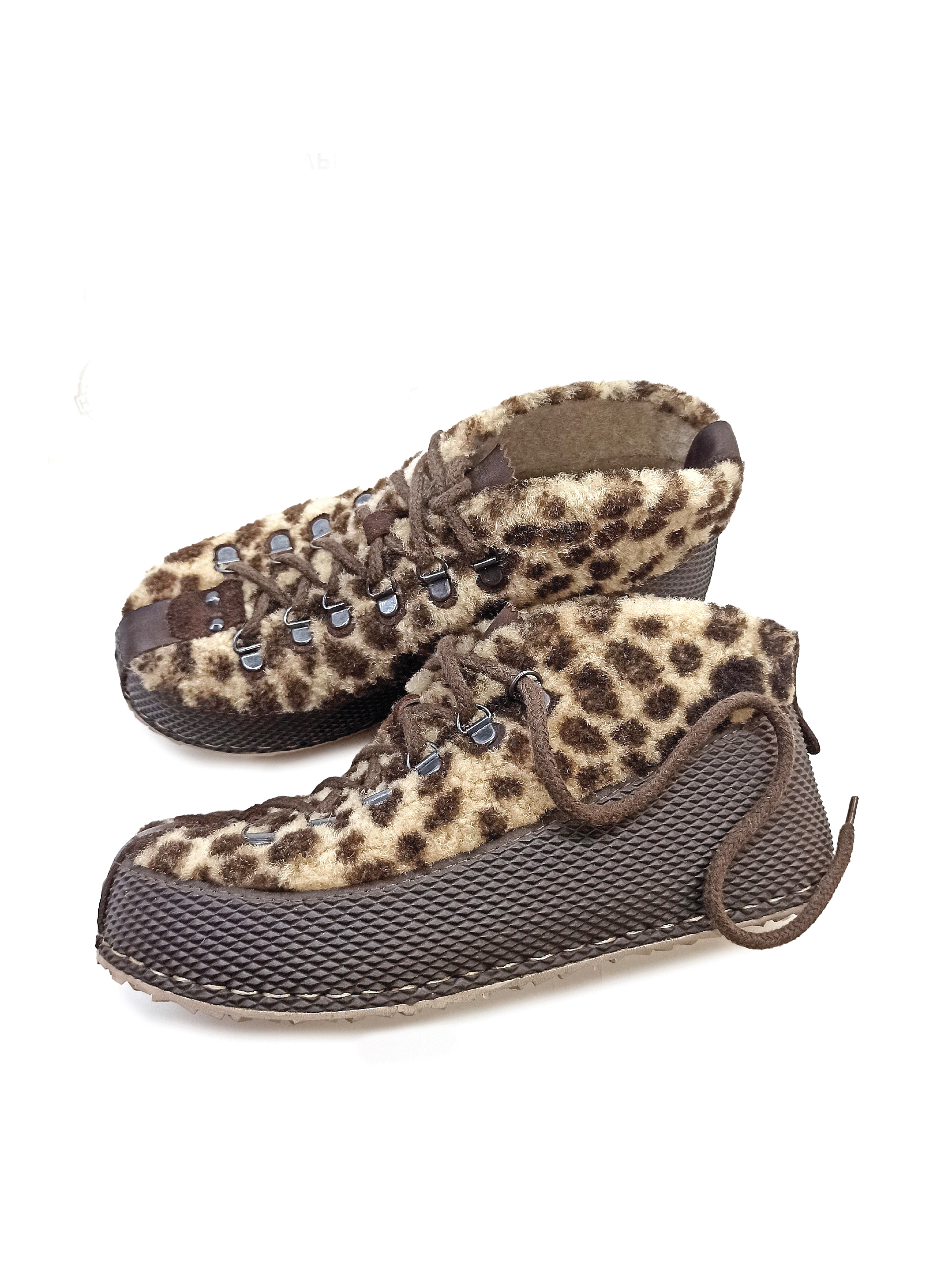 Стильные и теплые ботиночки из натурального меха с анималистичным принтом.