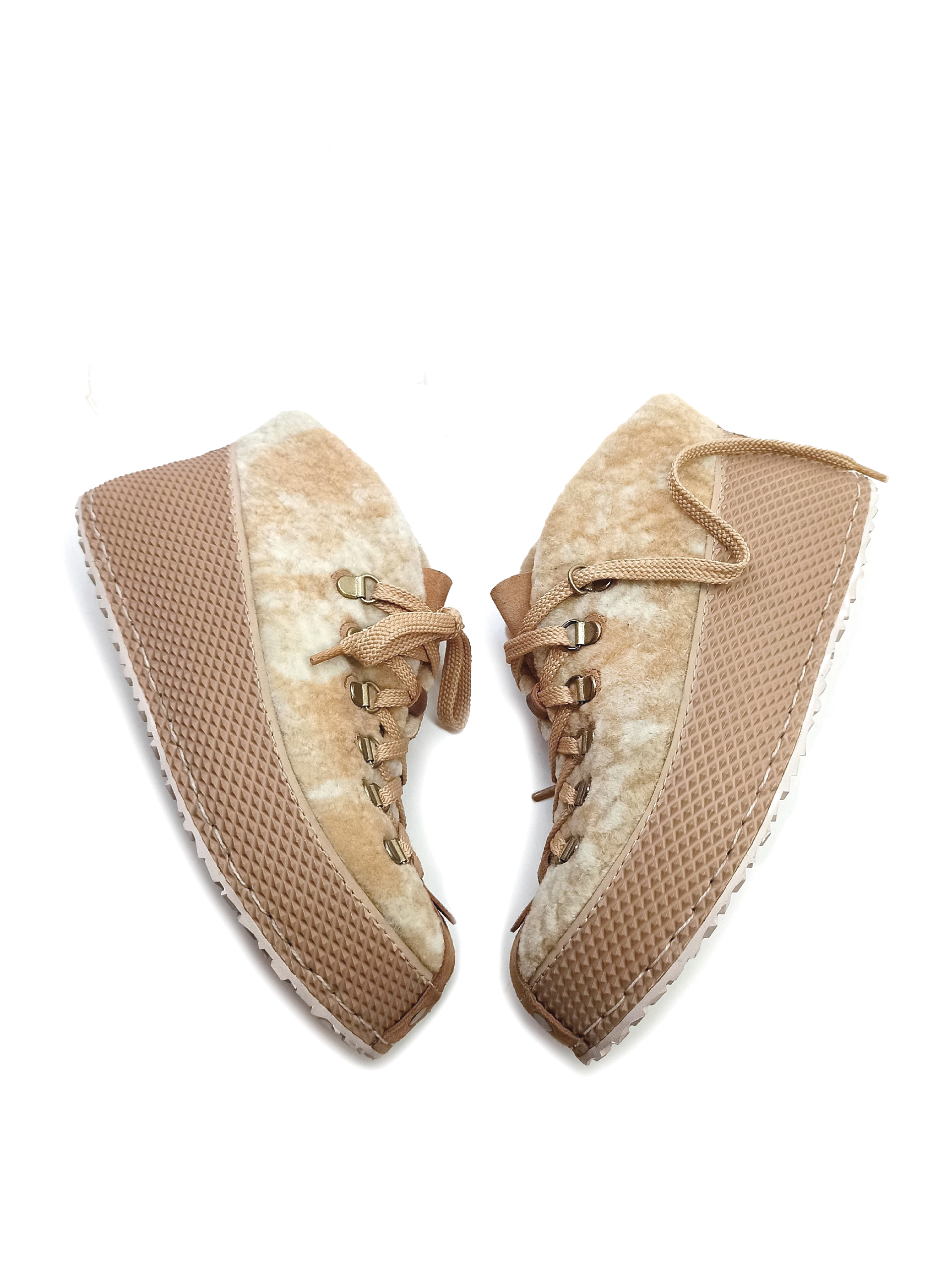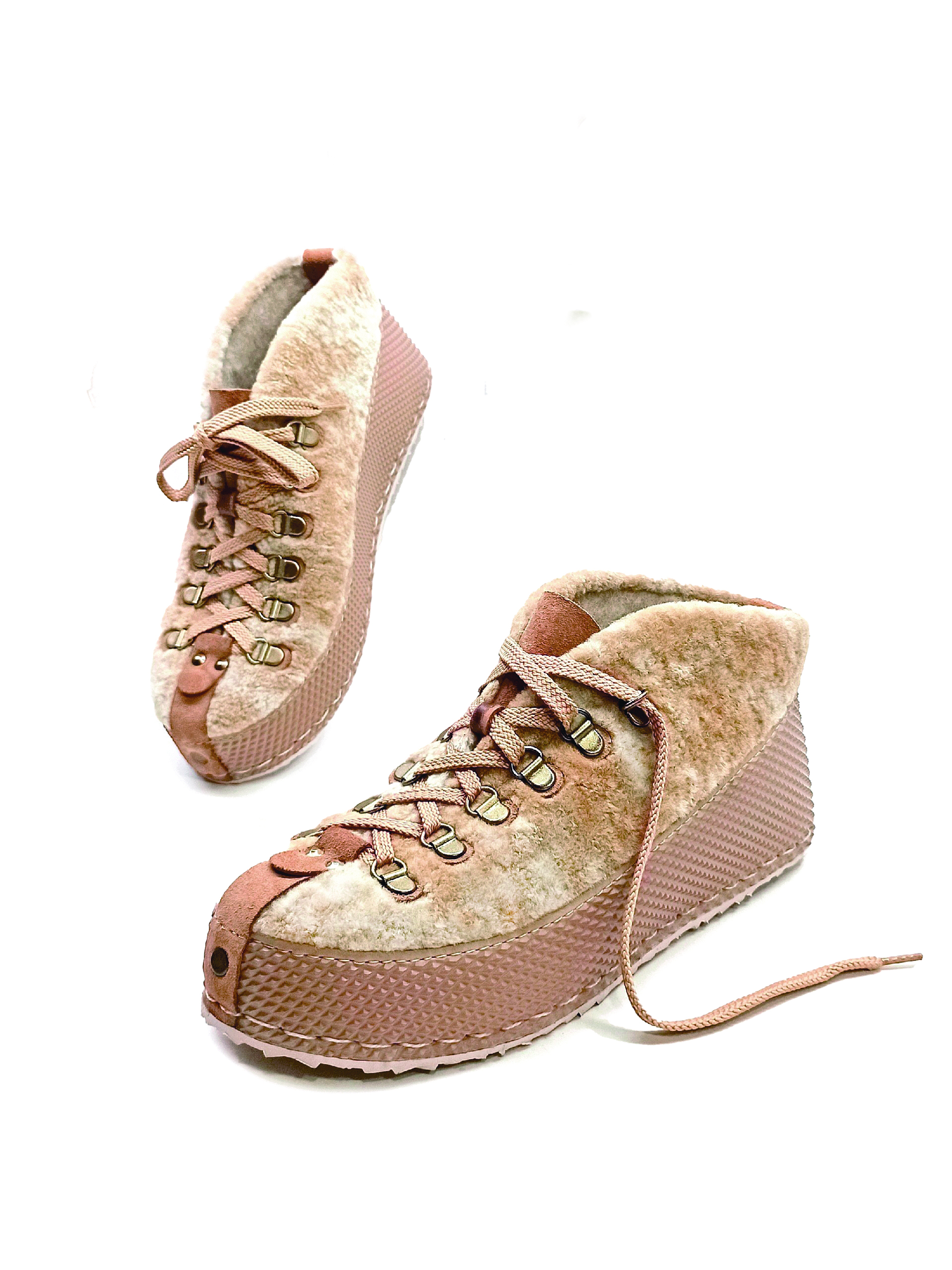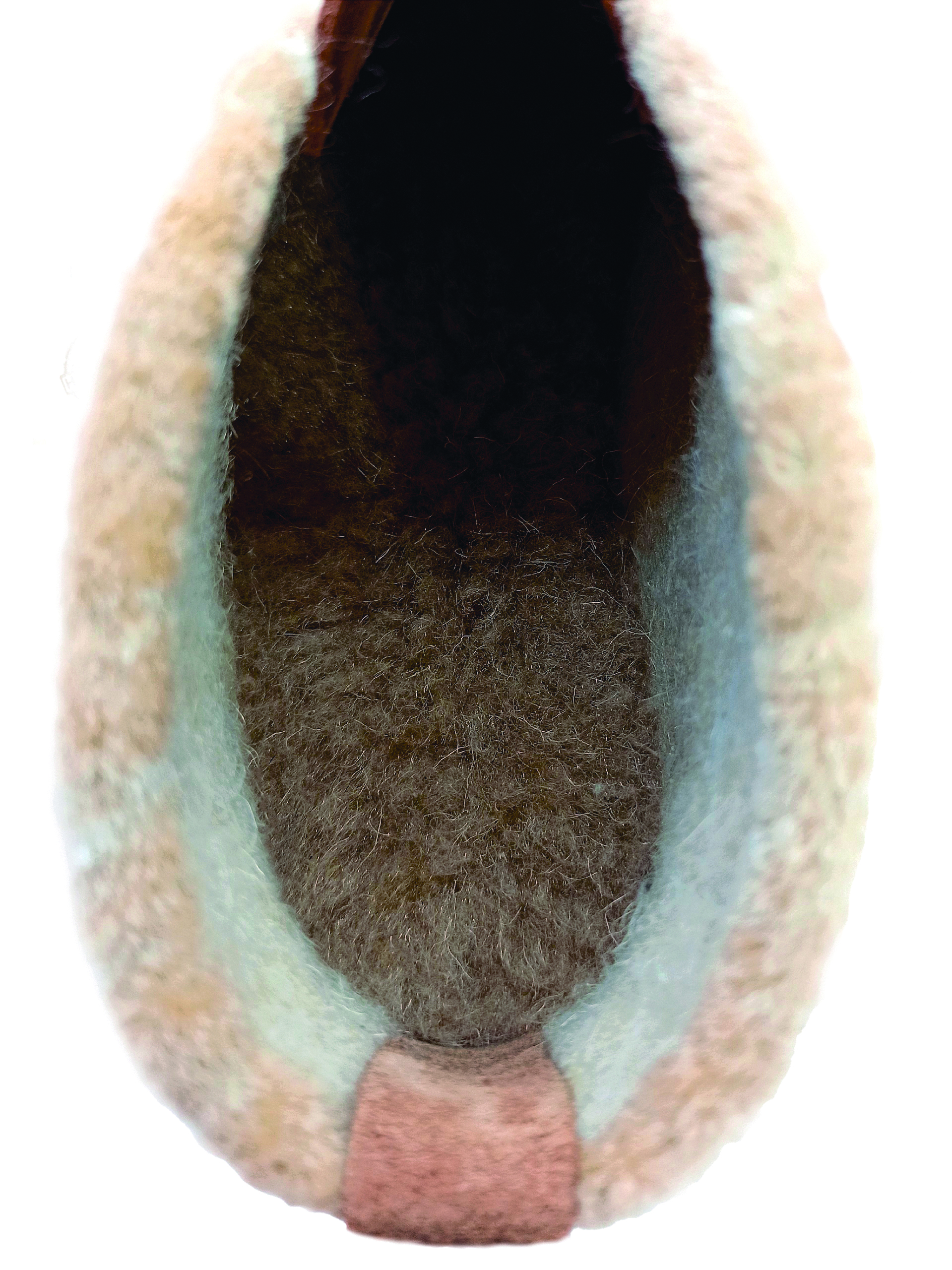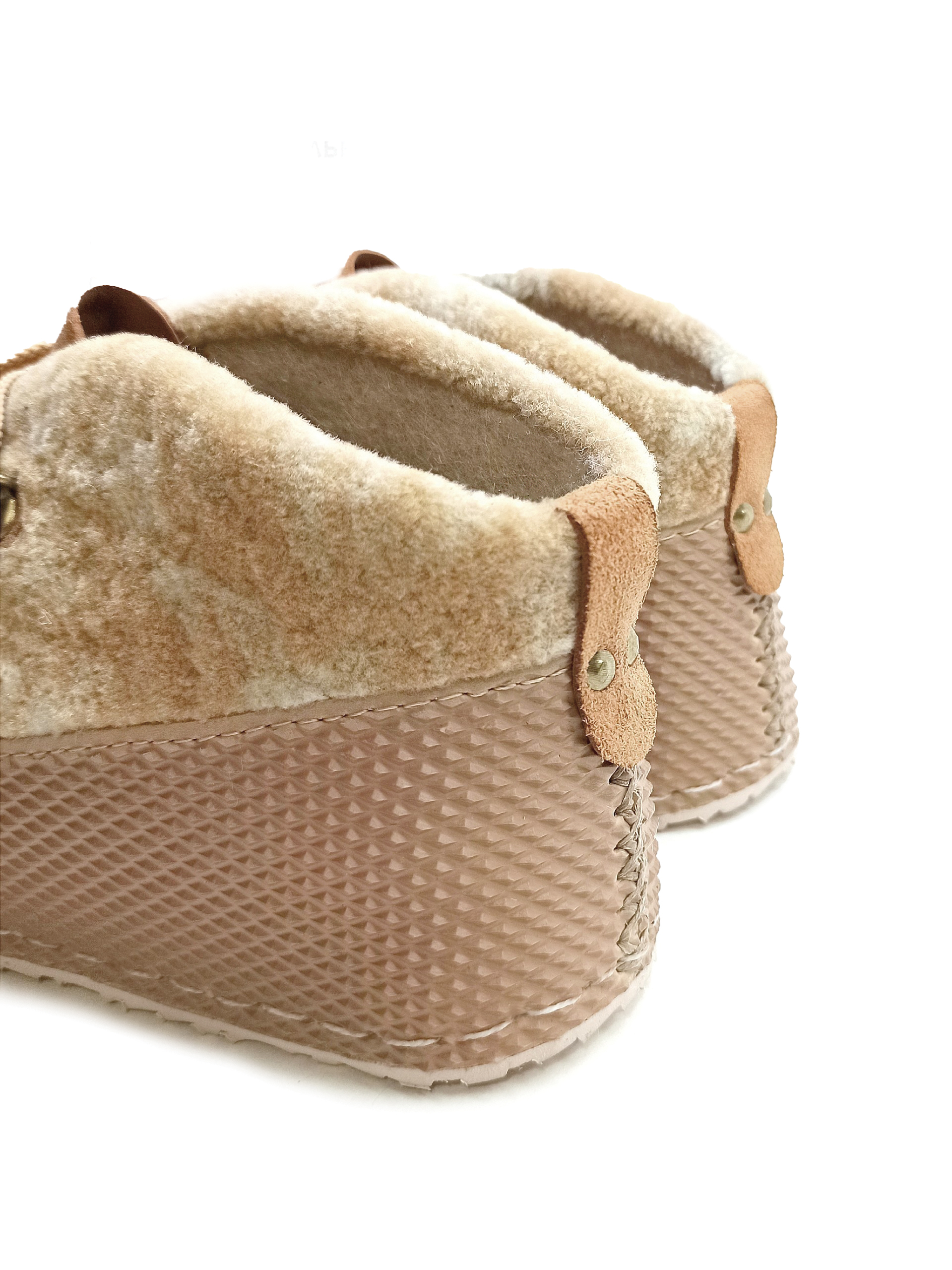 Облицовка подошвы - сэндвич из микропоры красивого персикового оттенка, натуральной кожи и внутреннего утепления. Она не промокает и хорошо моется, что не маловажно для наших погодных условий с их влажностью и реагентами.