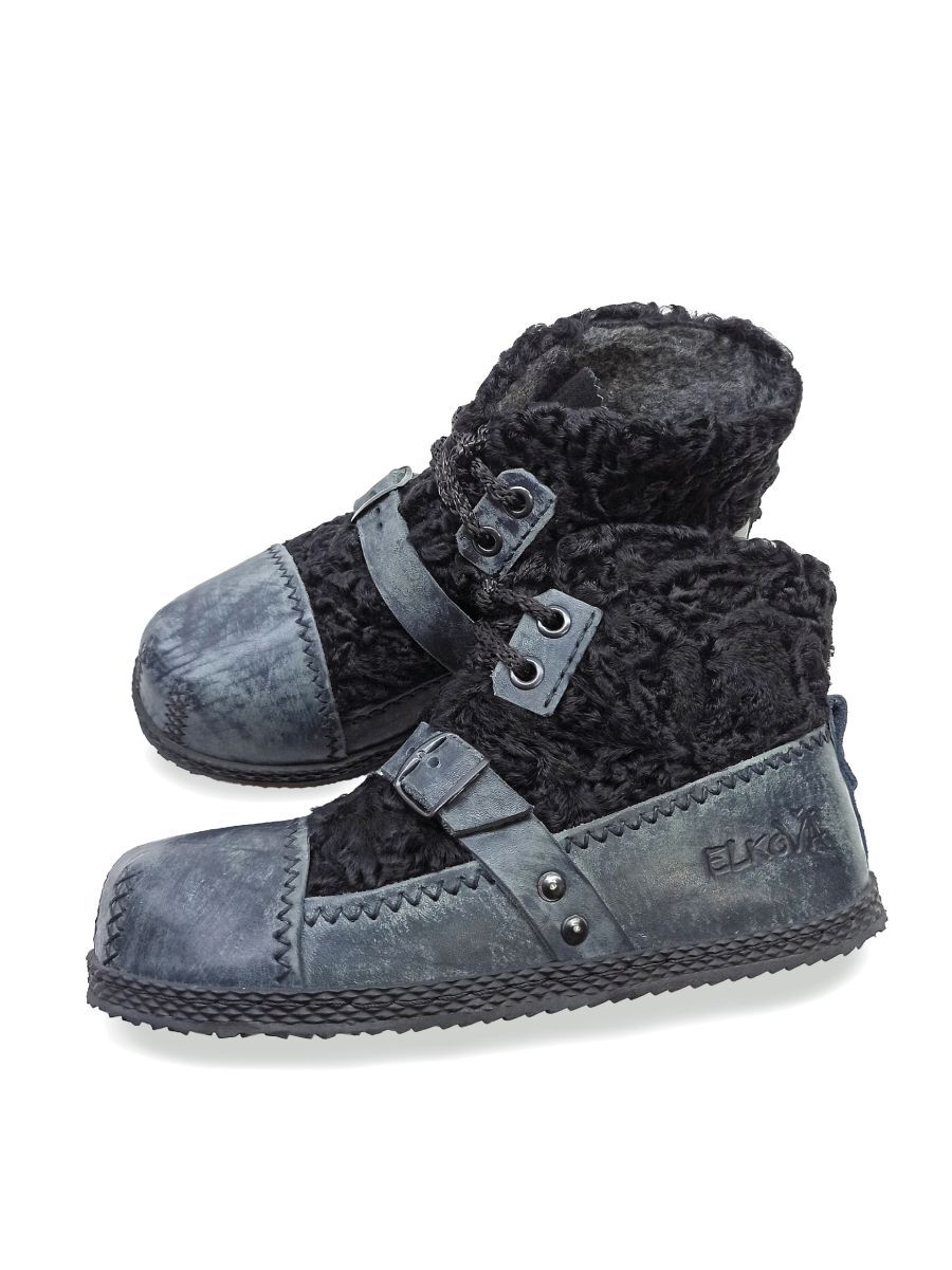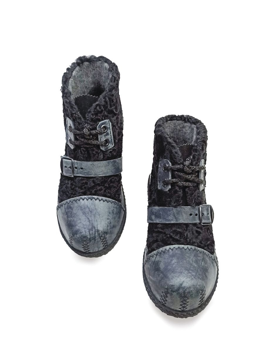 Легкие, комфортные, необычные сапожки с верхом из натурального каракуля черного цвета и натуральной шорно-седельной кожи красивого серого оттенка с небольшим Лофт эффектом.